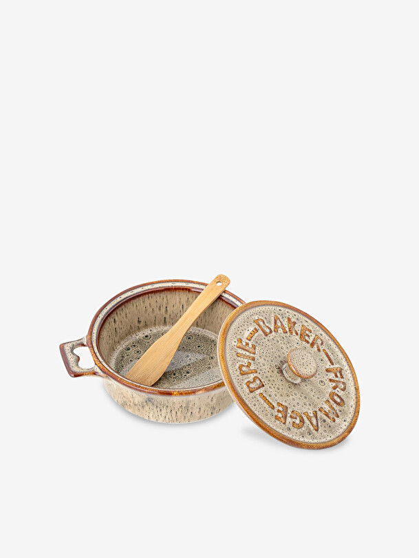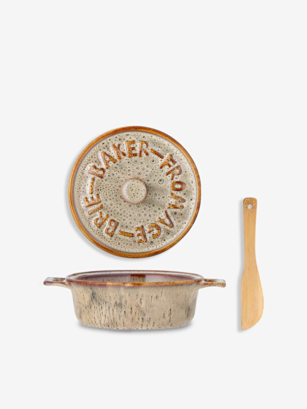 The Bloomingville Aram Oven Dish with Lid is a beautiful and practical addition to any dining table. Made of beautiful ceramic and equipped with a lid, it keeps your favourite cheeses or snacks fresh and protected. The set also includes a wooden knife for easy serving. Due to the nature of the glaze and the handmade technique, there may be some colour variations, which adds to its charm.