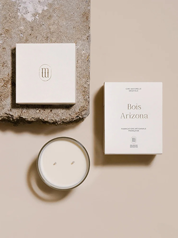 The Bois Arizona scented candle has a high quality of diffusion and fragrances and burns until the end of the candle. It is handmade in Grasse, the capital of perfumery in a natural vegetable wax of non-GMO soy. The fragrance was poured hot into the mass. It has 2 cotton wicks that do not produce black smoke. Its autonomy is approximately 60 hours. Do not exceed 2 hours of combustion at each use.