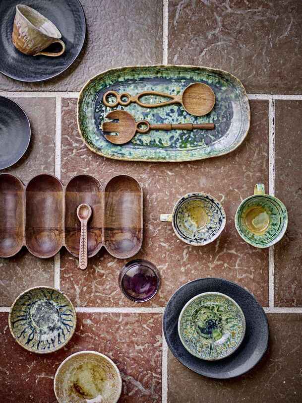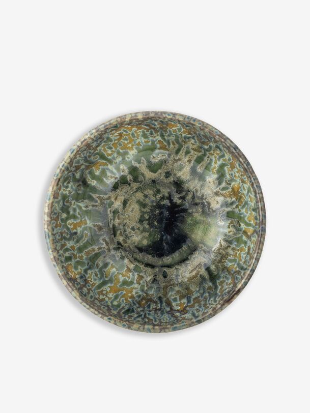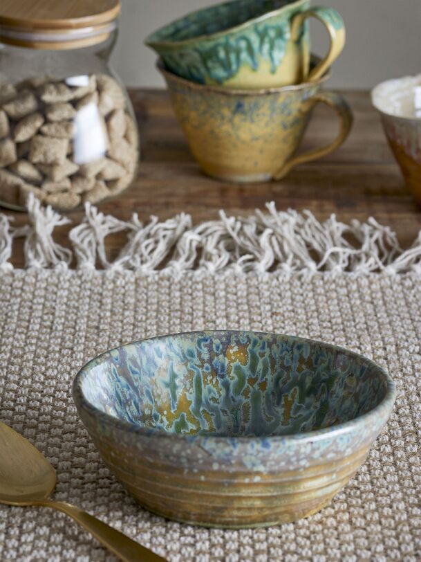 Petit format, grand effet. Ce bol en grès fait main se distingue par son émail réactif aux nuances de vert et reflets nacrés, qui rendent chaque pièce unique. Les variations de couleurs lui donnent un aspect minéral, presque vivant. Idéal pour les en-cas, les sauces ou en vide-poche déco. Une pièce singulière, à la fois fonctionnelle et expressive, qui trouve sa place partout dans la maison. Dimensions : D14,5xH5 cm.