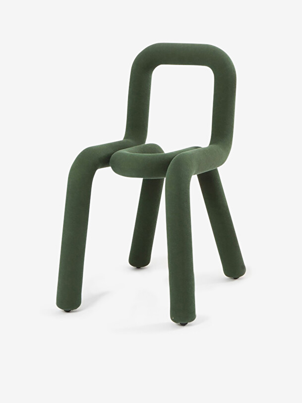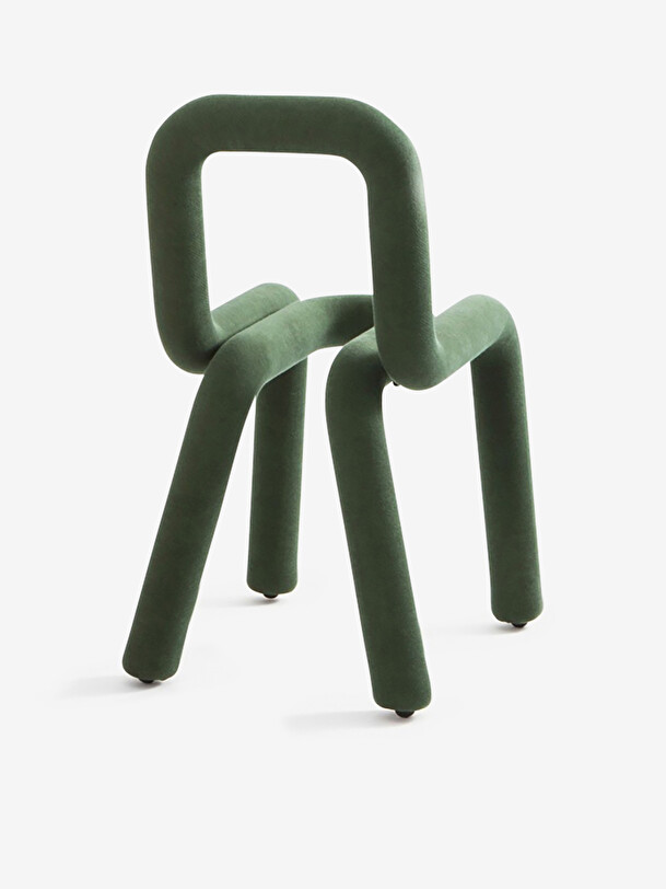 Composed of 2 nested tubular metal parts l All in all, the Bold chair updates the tradition of the tubular steel chair. Filled with thick polyurethane foam, the line drawn by the Bold successively plays the role of foot, seat and then backrest and gives it amazing comfort. In a single stroke, in the manner of Osvaldo Cavandoli’s Linea and thickened like a font to which grease is applied, the Bold chair manages to save on seat and backrest. Covered With a removable and washable textile cover, the Bold chair changes color in just a few moments.
