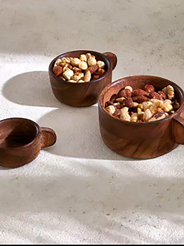 With their round and primitive shapes, the bowls in the Ayla collection are part of a minimalist and authentic decoration. Made of walnut-stained mango wood, these small bowls are available in three sizes. Perfect for storing small everyday objects such as keys, they can also be used together to hold your jewelry and accessories.