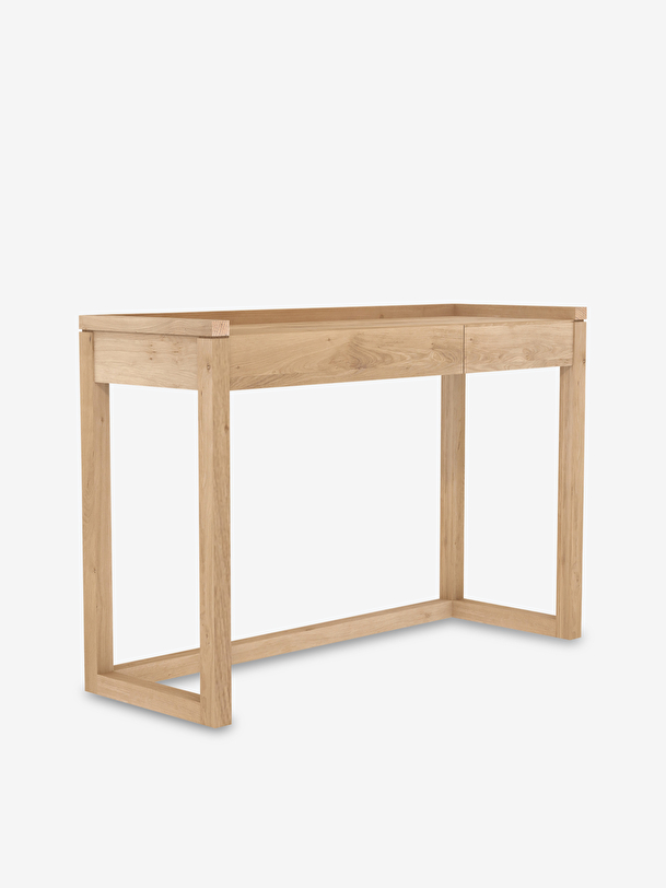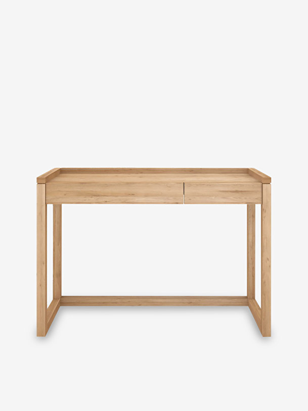 The Frame desk in solid oak is particularly suitable for small spaces thanks to its compact volume. Functional, its top surrounded by edges and its drawers allow you to organize your work in complete peace of mind. This desk can also be placed in the entrance and act as a console. In the interest of authentic beauty, the wood selected from European forests may contain knots and natural cracks that make each piece of furniture a unique piece.