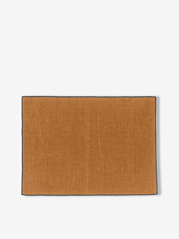 The Borgo set from Harmony Haomy is a set with a coated side and an uncoated side. The apron is made of 100% linen. It has a small black quilting around it. It measures 35×48 cm, it is a standard size.