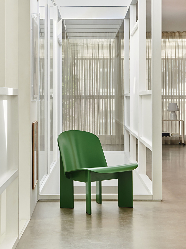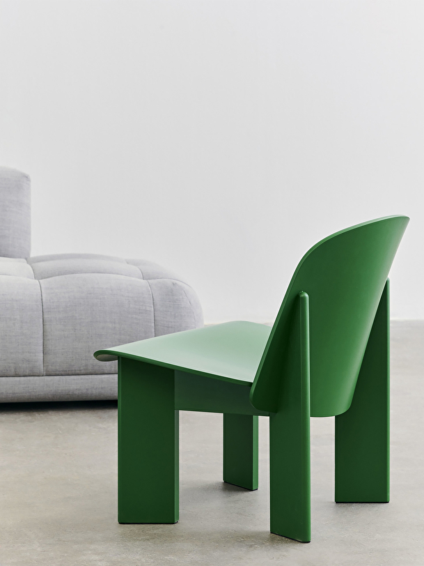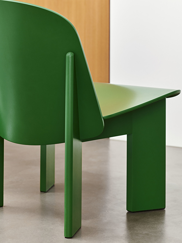 Chisel is a wooden armchair with massive lines and a distinctive silhouette. It is the creation of Norwegian designer Andreas Bergsaker and refers to a carpentry tool both by its name (Chisel means chisel in English) and by its shape, characterized by its generously sized beveled wooden legs. The large curved wooden shell has fluid, enveloping shapes and is striking with the perfection of its lines. Chisel offers excellent comfort whilst being compact and visually attractive, fitting perfectly into a living room, library, bedroom, entryway etc.
