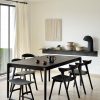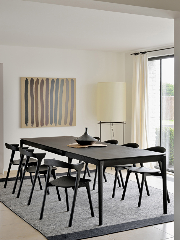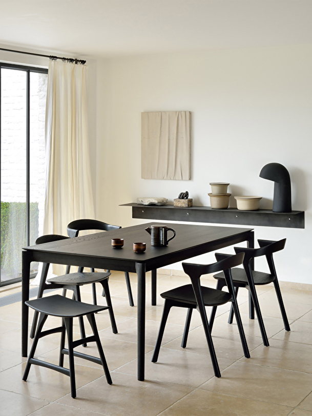 With the Bok table collection, designer Alain van Havre has created a series of solid oak tables with a slightly offset tabletop detail. The iconic airy shape and solid construction of the Bok line make it a timeless design that you can enjoy for years to come in your dining room or kitchen. This table has an integrated extension, easy to handle, which allows to receive more guests, without apparent discontinuity of the wood grain pattern. The chairs in the Bok collection are a perfect match for this table. For authentic beauty, the wood selected from European forests may contain natural knots and cracks that make each piece of furniture unique. Available in several sizes