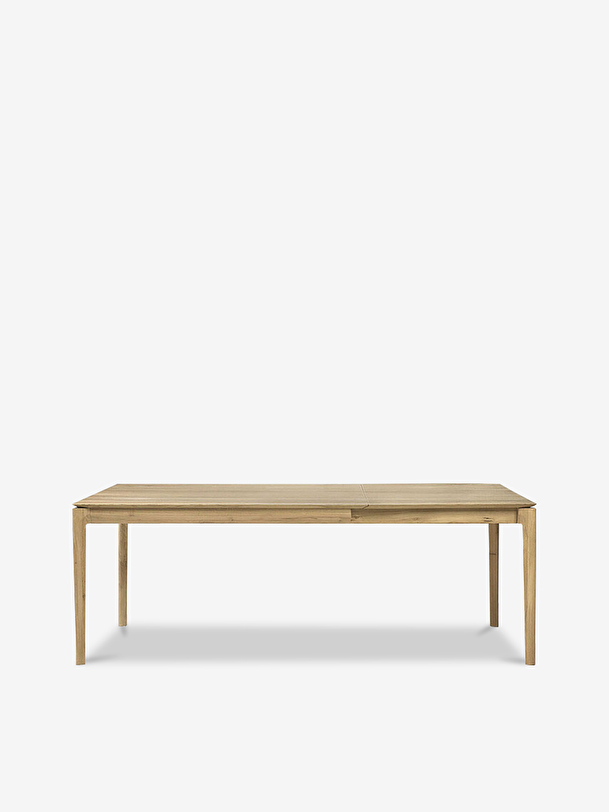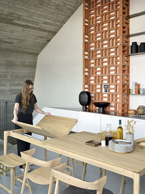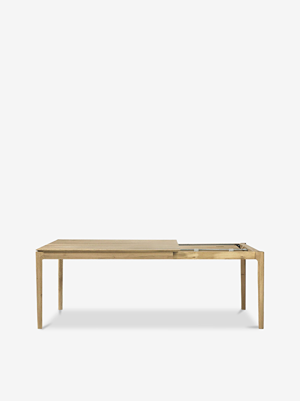 The Bok table in solid oak designed by Alain van Havre offers a perfect solution for a limited space. With an internal extension, the table expands to accommodate more guests, without apparent discontinuity of the wood grain pattern. The iconic airy shape and solid construction of the Bok line make it a timeless design that you will enjoy for years to come. For authentic beauty, the wood selected from European forests may contain natural knots and cracks that make each piece of furniture unique.