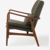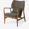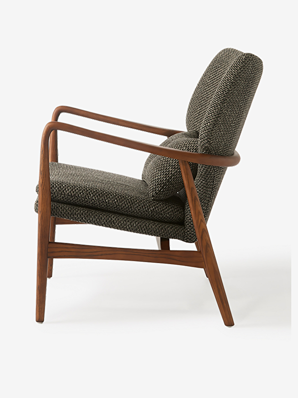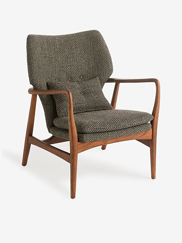 The silhouette of the Peggy armchair, an ode to the Scandinavian style of the 50s, is composed of a polished ash structure (100% FSC) with a rounded and refined look and an enveloping seat covered in mottled fabric, decorated with 3 buttons on the backrest. The woodwork is artisanal, while maintaining impeccable finishes. A timeless style that will slip into your interior, from the bedroom to the living room, emphasizing a sober and elegant intention. A small decorative cushion covered in the same fabric as the seat is provided.