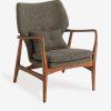 The silhouette of the Peggy armchair, an ode to the Scandinavian style of the 50s, is composed of a polished ash structure (100% FSC) with a rounded and refined look and an enveloping seat covered in mottled fabric, decorated with 3 buttons on the backrest. The woodwork is artisanal, while maintaining impeccable finishes. A timeless style that will slip into your interior, from the bedroom to the living room, emphasizing a sober and elegant intention. A small decorative cushion covered in the same fabric as the seat is provided.