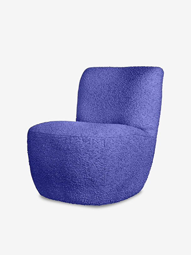 The Petty collection comes in a palette of bright and contrasting shades. It’s up to you to compose your own by combining several colors. This compact armchair is composed of an ergonomic backrest and a soft seat, covered in textured bouclette fabric. It fits anywhere thanks to its small size. The pouf is an undeniable and very practical decorative element. Its organic shape gives it a unique side.