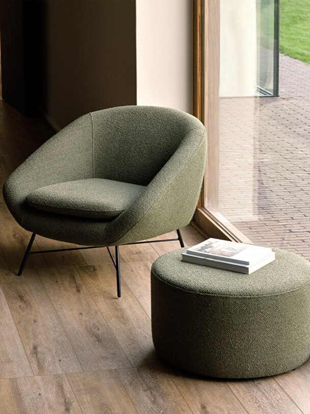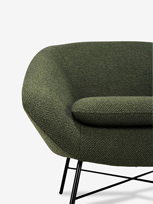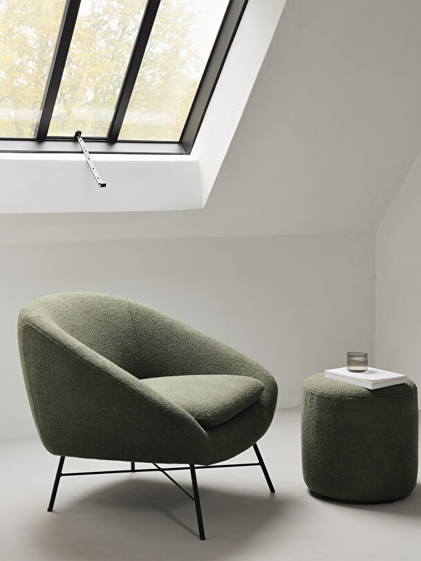 Drawing its inspiration from the 50s, the Barrow armchair is distinguished by its irresistible vintage charm. The lightness of the metal base combined with a high-end fabric covering creates a timeless design that will fit into any interior. Let yourself go to the warm embrace of this armchair with its striking comfort.