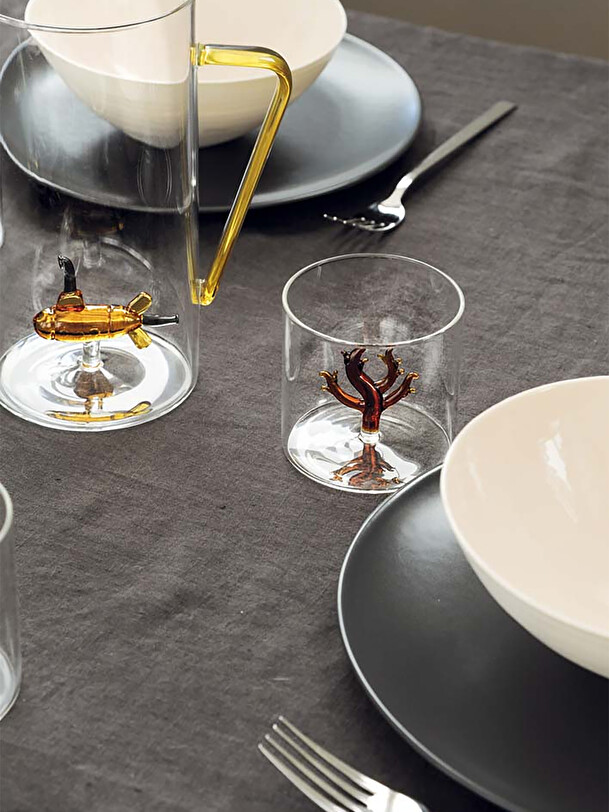 Each subject is hand-made in blown glass, making each glass unique. Choose your drinking mood and experiment with various combinations to create a joyful and refined table.
