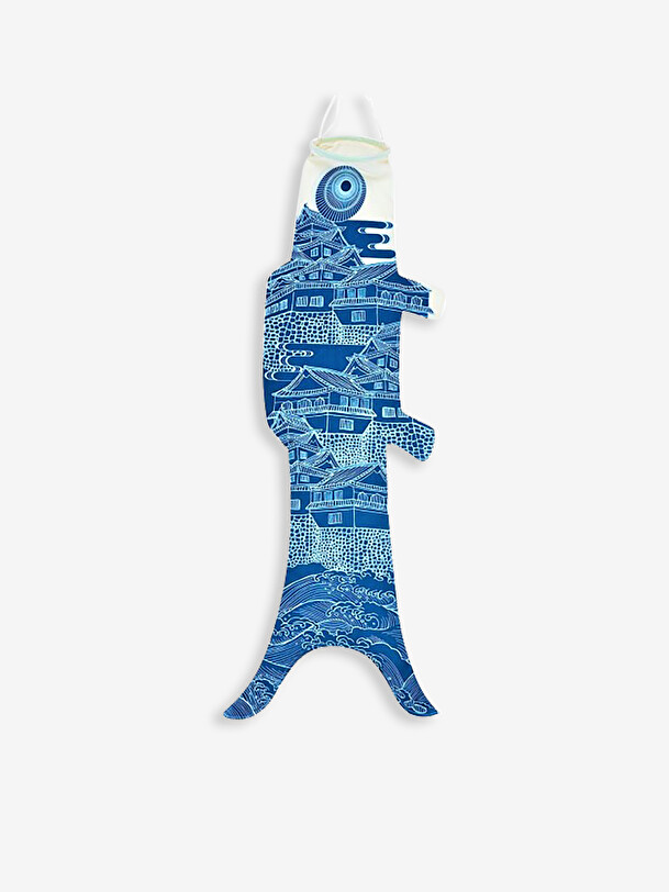 With the medium-sized Ôshiro Bleu koinobori (1m high), let yourself be lulled by the promises of a distant journey, a journey through time, a soothing moment. This elegant, majestic windsock will seduce all adventurous hearts and lovers of exotic and refined decoration. Embark on your dream and cast off! We owe this Ôshiro Bleu koinobori to Atsushi, a multi-talented Japanese artist who navigates with ease between Japan and Europe. Atshushi also designed the Shochikubaï collection.