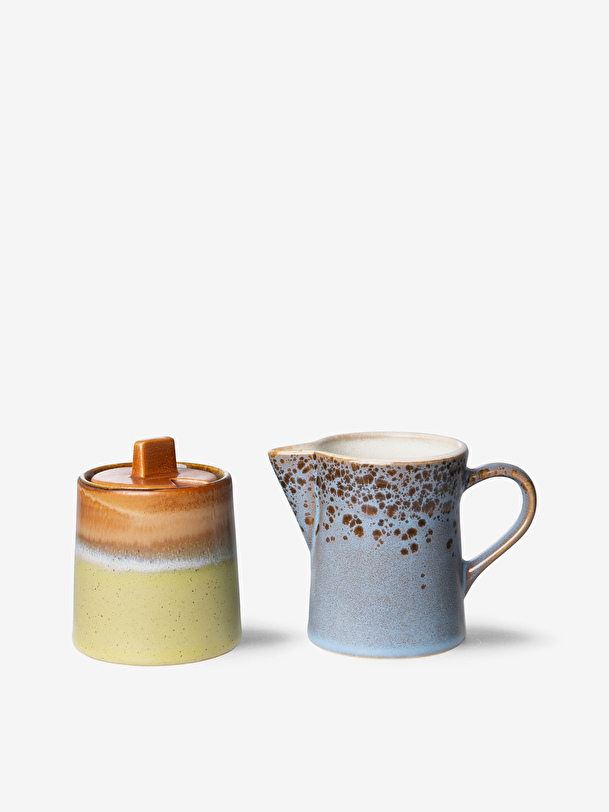 The ceramic milk jug and sugar bowl from HK Living’s popular 70s collection will delight vintage lovers. With colours inspired by nature and hand-glazed, the milk jug and sugar bowl are uniquely finished, creating beautiful variations in patterns and colours to enhance your kitchen or dining room.