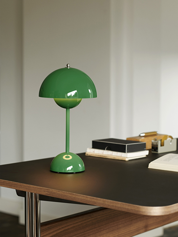 FlowerPot lamps are emblematic lighting fixtures from the 1970s, design allegories of the Flower Power movement, created by Verner Panton, a Danish designer considered to be one of the most influential of the 20th century. A visionary, he devoted himself to working with new shapes, colors and materials in a remarkable style of modernity. For the FlowerPot luminaires, there are two half-spheres of different sizes which are harmoniously juxtaposed and offered in a host of colors and models, here offered in a nomadic version. From the bedroom to the living room via the office, this cordless lamp will give a seventies touch to the room in which you will need it. Variable light intensity: 100%, 50% and 20%. Available in several colours.