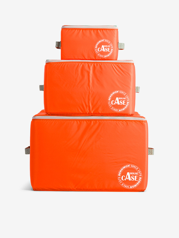 Small nylon bag with zipper closure. Dimensions: 20 cm high, 30 cm wide, and 20 cm long.