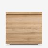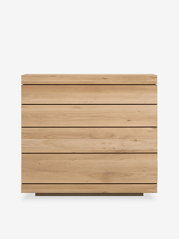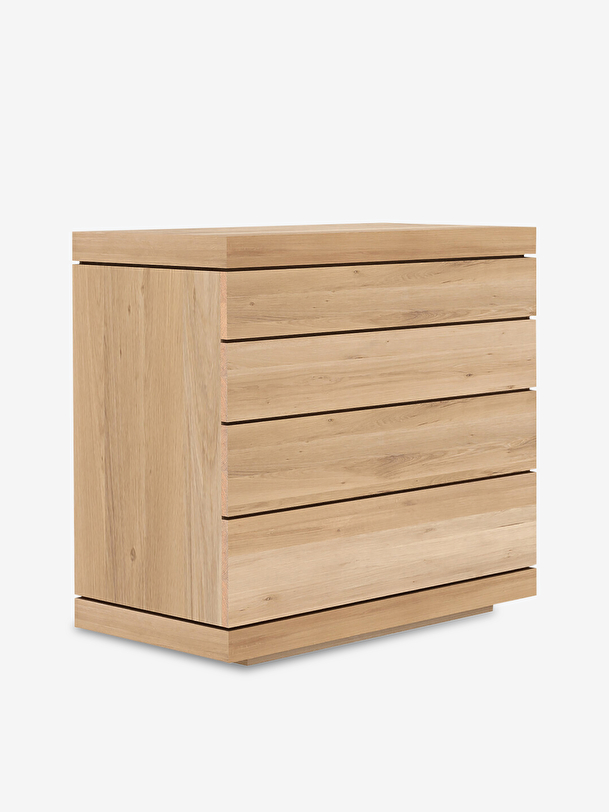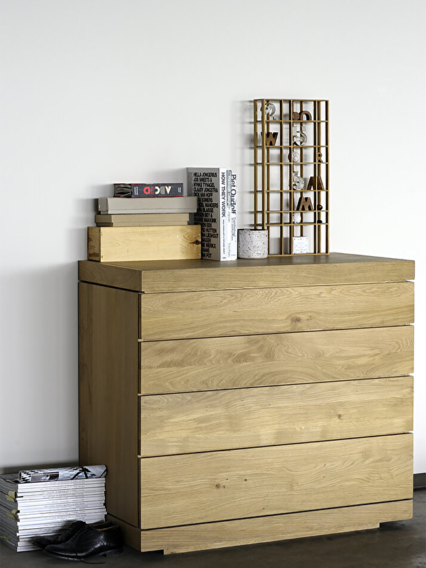Made of solid oak, the Burger chest of drawers combines sturdiness and geometric lines in a clean style. Equipped with four drawers offering a large storage volume, it is both simple and functional. For authentic beauty, the wood selected from European forests may contain natural knots and cracks that make each piece of furniture unique.