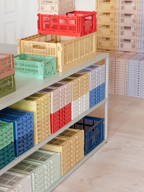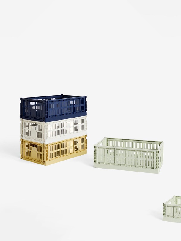 Les paniers Colour Crate de HAY sont des caisses empilables au design ajouré, idéales pour organiser vos espaces de vie avec style. Fabriqués à partir de plastique 100 % recyclé post-consommation, ils allient fonctionnalité et esthétique. Accessoires Couvercles : Disponibles pour les tailles M et L, en acier thermolaqué, pour empiler ou fermer les caisses. Roulettes : Jeu de 4 roulettes (dont 2 avec freins) pour les tailles M et L, facilitant le déplacement.