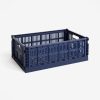 Les paniers Colour Crate de HAY sont des caisses empilables au design ajouré, idéales pour organiser vos espaces de vie avec style. Fabriqués à partir de plastique 100 % recyclé post-consommation, ils allient fonctionnalité et esthétique. Accessoires Couvercles : Disponibles pour les tailles M et L, en acier thermolaqué, pour empiler ou fermer les caisses. Roulettes : Jeu de 4 roulettes (dont 2 avec freins) pour les tailles M et L, facilitant le déplacement.