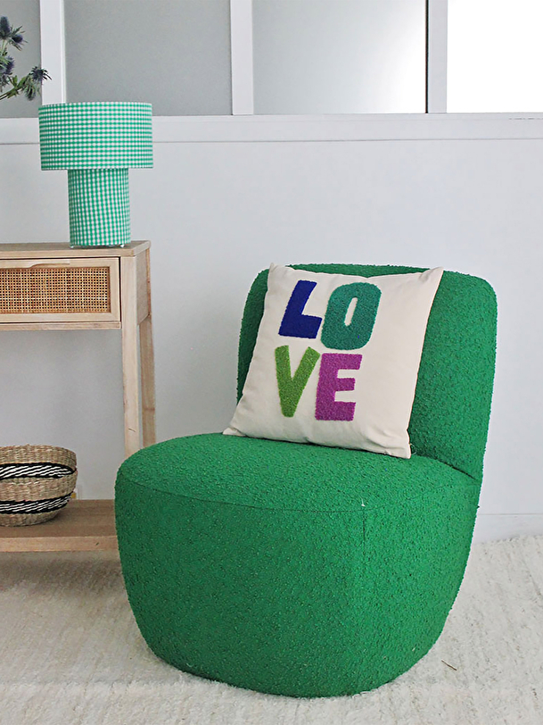 The Petty collection is available in a palette of bright, contrasting shades. It's up to you to create your own by combining several colors. This compact armchair is composed of an ergonomic backrest and a soft seat, covered in textured terry fabric. It fits everywhere thanks to its small size. The pouf is an undeniable decorative element and so practical. Its organic shape gives it a unique side.