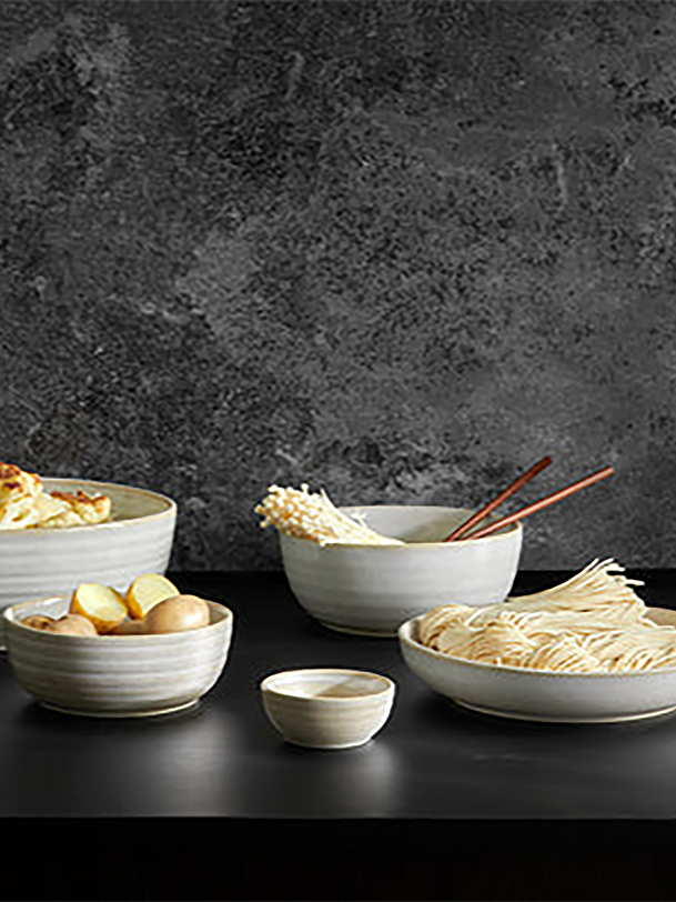 In addition to the classic Poké Bowls, we have added three new products to the collection: a plate as well as two new bowl sizes can be combined with the Poké Bowls and Mini Poké Bowls in the decoration colours Tamari, Mangosteen, Cauliflower and Ocean. The series convinces with its uniqueness and authenticity, because all pieces are handmade with passion by experts in Portugal. An effect glaze that reacts differently to each firing, tactile rotation grooves and not quite perfect roundings give a pronounced artisanal look.