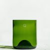 Short drink glasses made from brown Bordeaux bottles.
