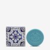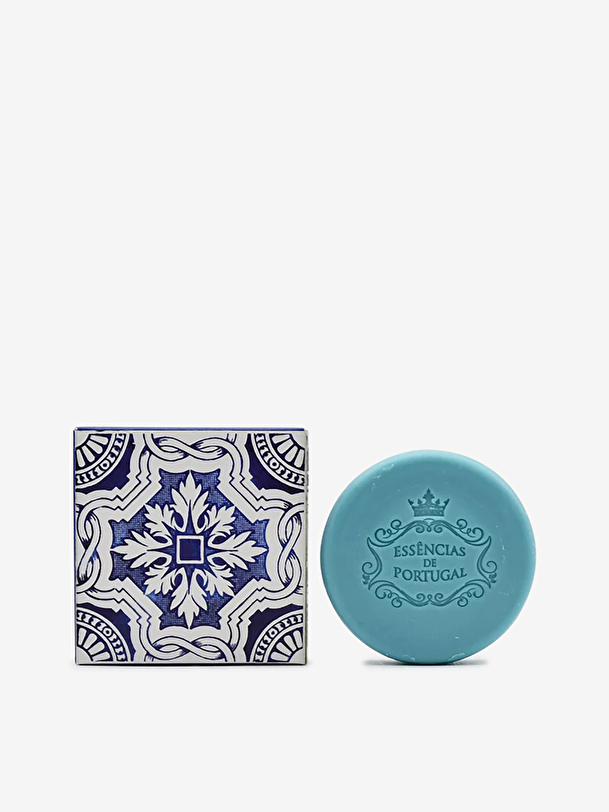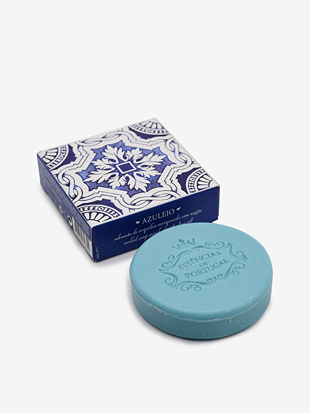 A small, round soap with an orchid scent and enriched with olive oil, with packaging reminiscent of the famous Portuguese azulejos.