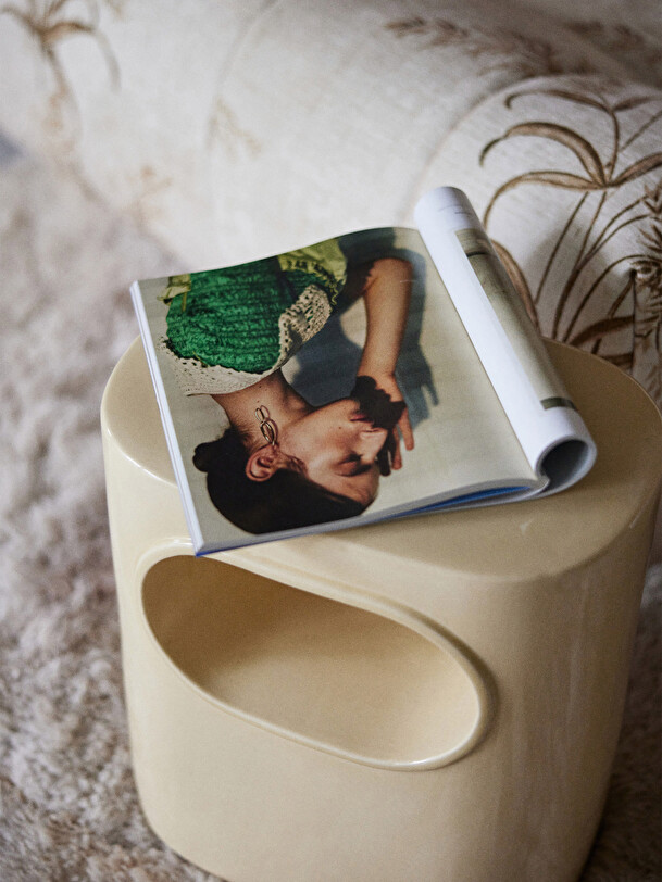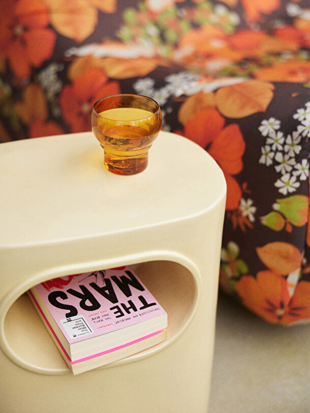 This multifunctional side table, available in classic cream and vibrant orange, is a celebration of form and function that perfectly captures the essence of modern, space-inspired aesthetics. Its smooth, glossy finish is not only eye-catching, it is also practical, easy to clean and durable. The central recess doubles as a handy storage space, keeping the space tidy while providing a showcase for your favourite reading material.