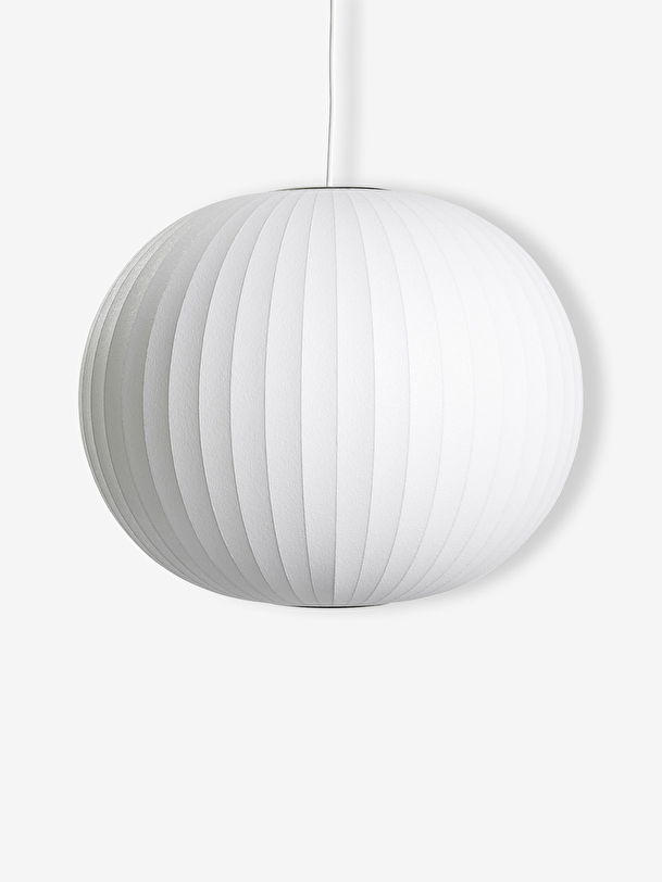 Shipping in 2 months———————————————————————————————————————————————————————————- Bubble suspensions, with various spherical shapes, bring a touch of softness and diffuse luminosity. Designed in 1952 by George Nelson, these elegant lamps rest on a sturdy and light steel frame while forming an airy and delicate ensemble. Nelson was inspired by a set of Swedish silk-covered hanging lamps he wanted to acquire for his office. Unfortunately, the price seemed unaffordable to him. Nelson being a clever and resourceful designer, he created the first set of Bubble lamps by spraying a white, translucent resin, a technique developed at the time by the U.S. military. Nelson drew his inspiration from a variety of simple and natural forms to design these suspensions. – Materials: Polymer sprayed onto a steel frame – Dimensions : Small : Ø 32 cm x h 30 cm Medium : Ø 47 cm x h 39 cm Large : Ø 67 cm x h 58 cm Weight : Small : 1,3 kg Medium : 2,2 kg Large : 3,1 kg – Packaging : Small: W 41 cm x D 41 cm x H 43 cm Medium: W 56 cm x D 56 cm x H 48 cm Large: W 71 cm x D 71 cm x H 68 cm – Accessories: Cord of 183 cm maximum and brushed nickel ceiling plate – E27 60 watt bulb not included – Maintenance: Soft cloth
