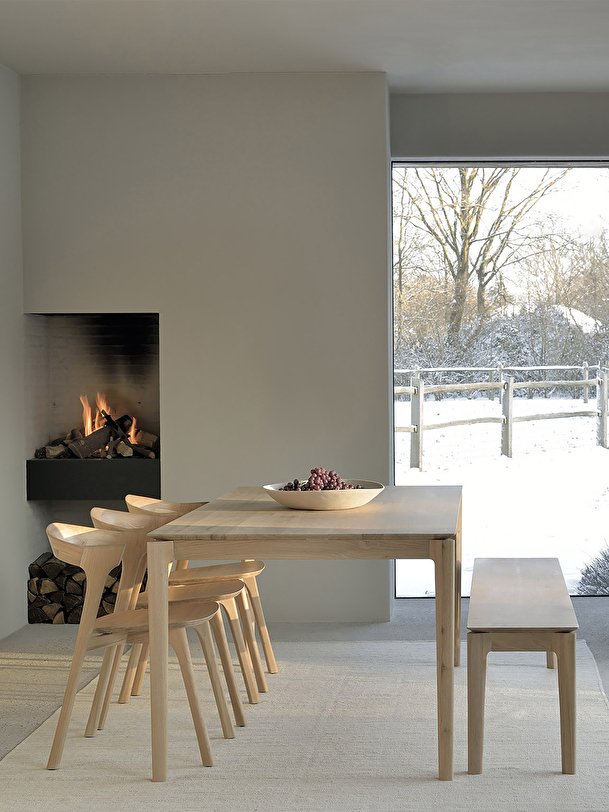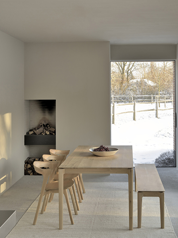 With the Bok table collection, designer Alain van Havre has designed a series of solid oak tables whose slightly offset top detail makes it special. The iconic airy shape and solid construction of the Bok range make it a timeless design that you can enjoy for many years in your dining room or kitchen. The chairs from the Bok collection are the perfect match for this table. In the interest of authentic beauty, the wood selected from European forests may contain natural knots and cracks that make each piece of furniture unique. Available in several sizes.