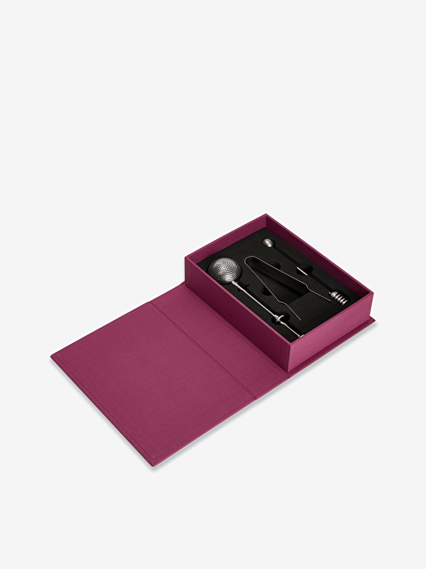 This is the essential kit for every tea lover – a refined toolbox in an elegant book-shaped box that makes the perfect farewell gift. Inside, you’ll find everything you need to elevate your tea parties. All products are made of stainless steel and can be washed in the dishwasher.
