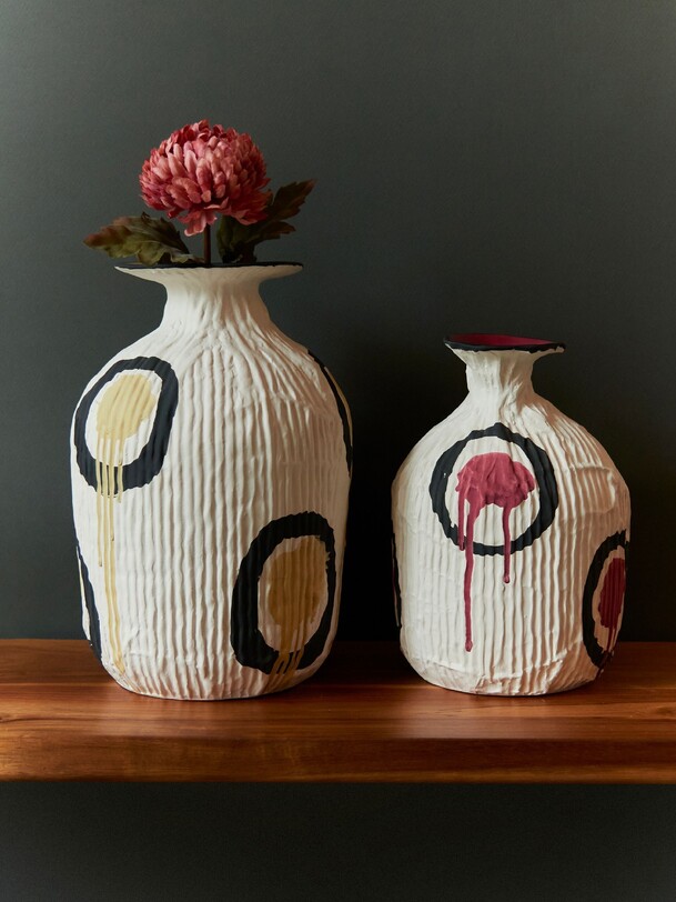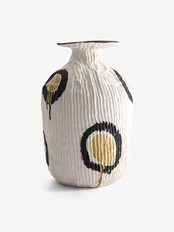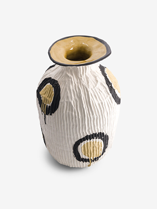 BENSIMON Home Home Vase Paper Mache Effect Yellow Drawing Yellow | Pink