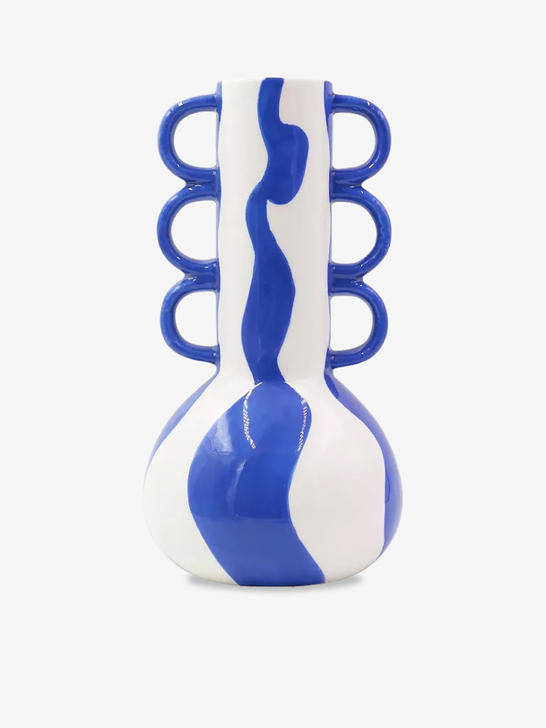 un vase bleu et blanc qui apportera une touche de couleur et de modernité à votre intérieur. Utilise-le pour y mettre vos fleurs ou en simple élément de décoration.