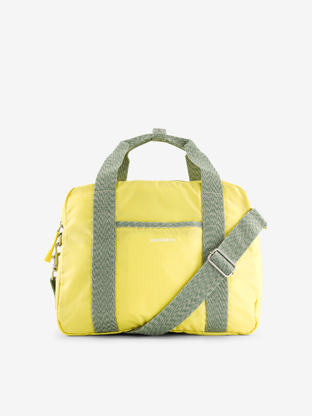 Medium-sized All Day bag. Featuring 3 pockets, including one on the front, one for the main bag, and one zippered interior. Double handle and adjustable strap. Dimensions: 32 x 17 x 26 cm. Zipper closure.