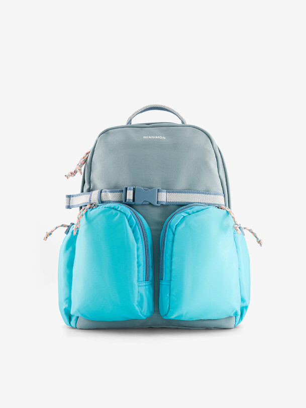 Description: Montfleur backpack with zipper closure. It features a large main zippered pocket, two zippered front pockets, and two slip side pockets. There’s also an interior zippered pocket. Its dimensions are 31 cm long, 12 cm wide, and 38 cm high. The handle is adjustable.