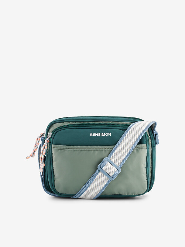 Maidstone Small Messenger Bag with a small capacity. Features two zippered storage pockets, a front pocket, and an interior zippered pocket. The handles are adjustable for greater comfort. Practical zipper closure. Dimensions: length 24 cm, width 5.5 cm, height 18 cm.