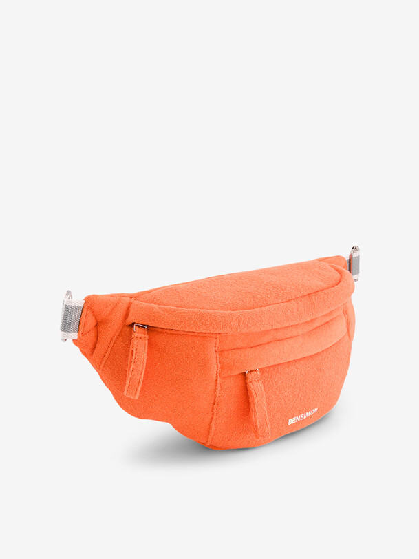 Description Faux leather fanny pack. It features a large main zippered pocket, a front zippered pocket, and an interior zippered pocket. The handle is adjustable for ease of use. Dimensions: 35 cm long, 8 cm wide, and 13.5 cm high.