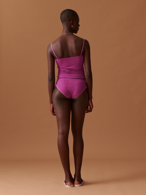 These ribbed briefs combine comfort and style. Their elasticated waistband is adorned with a delicate scalloped edge. The diagonal ribbing adds a touch of originality.