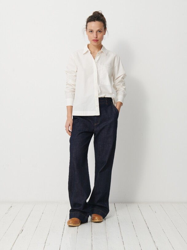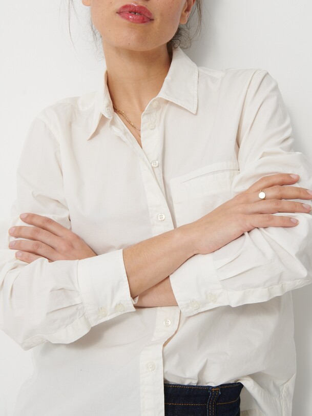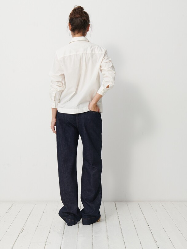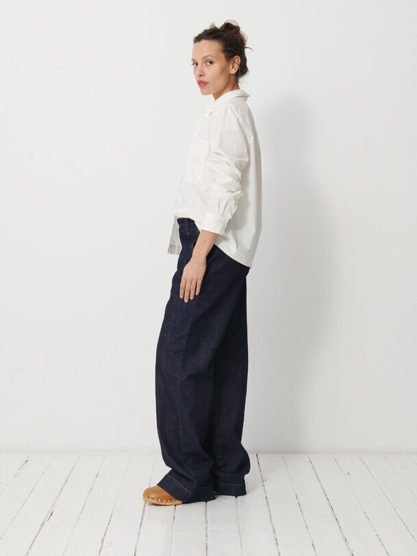 The Galicia shirt is a wardrobe staple. It features a boxy shape made from printed viscose. It boasts a classic collar and is fastened at the front with ornate buttons made from recycled polyester. Its long sleeves are finished with buttoned cuffs.