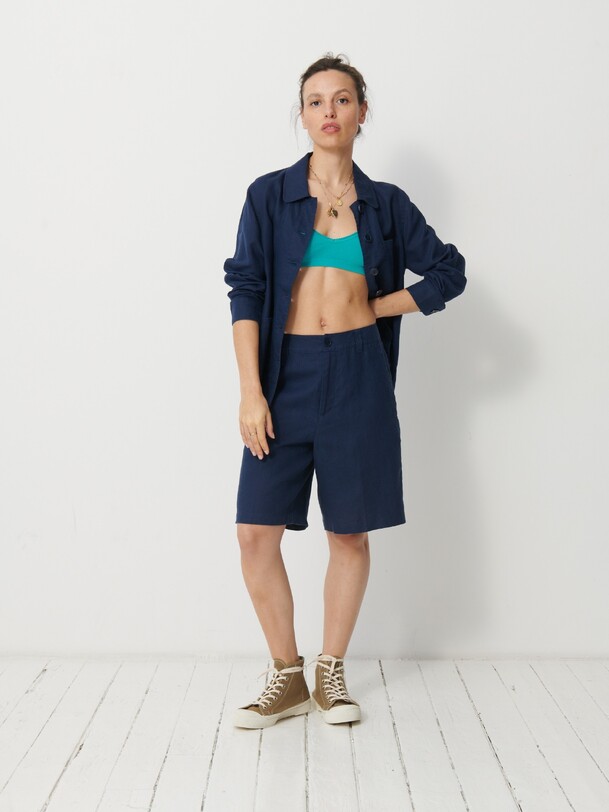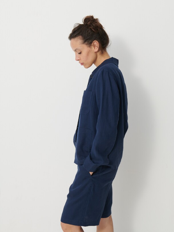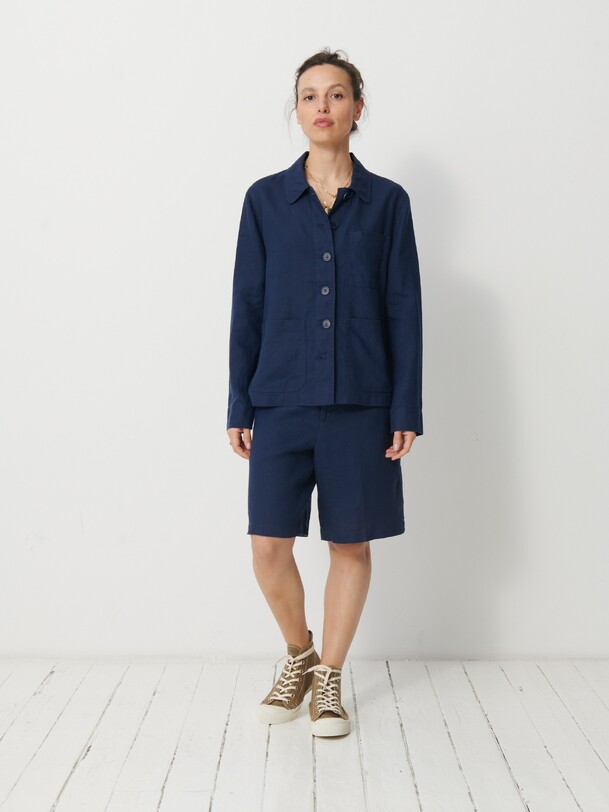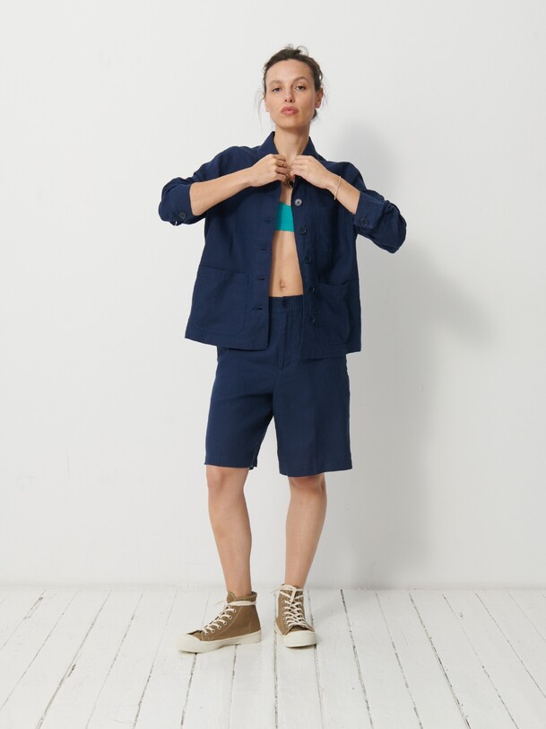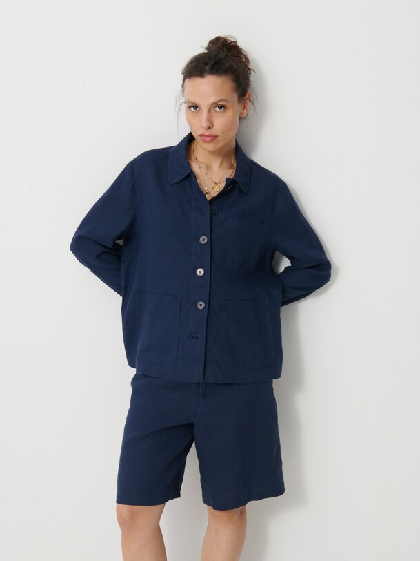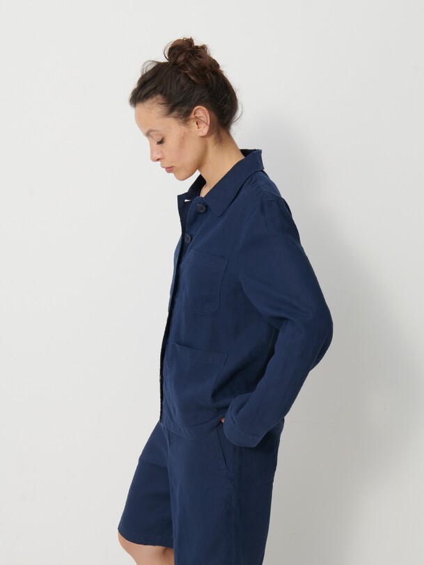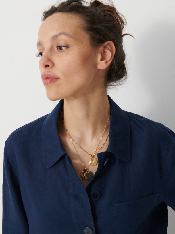 The Golta jacket features a button front, classic collar, and patch pockets. It has long sleeves with buttoned cuffs.