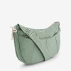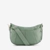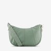 Medium-sized Half Moon bag. Large front zipped pocket and one interior zipped pocket. Drawstrings to tighten the sides. Dimensions: length 34 cm, width 5 cm, height 22 cm. Zipper closure.