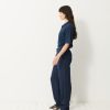 The Kybele trousers are long and straight. They feature an elasticated waistband at the back and a drawstring in matching cotton.