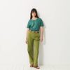 The Dama trousers are wide-leg in gabardine. They feature a high waist with a straight belt. The front pockets are Italian style, while the back pockets are welted. Its design is inspired by the 70s, with a long and sleek silhouette.