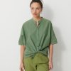 The Luciana T-shirt is a sleeveless design made from slub cotton-linen. It features a round neckline with a ribbed trim.