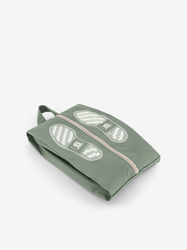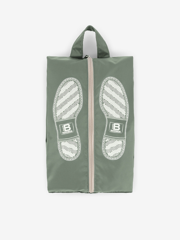 Flat or square shoe storage bag. Dimensions: length 33 cm, width 21 cm, height 15 cm. Zipper closure.