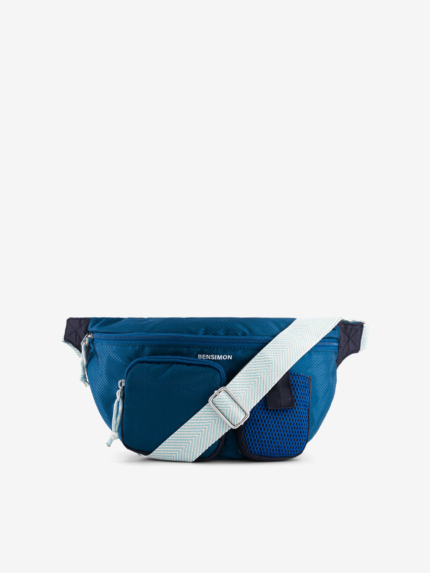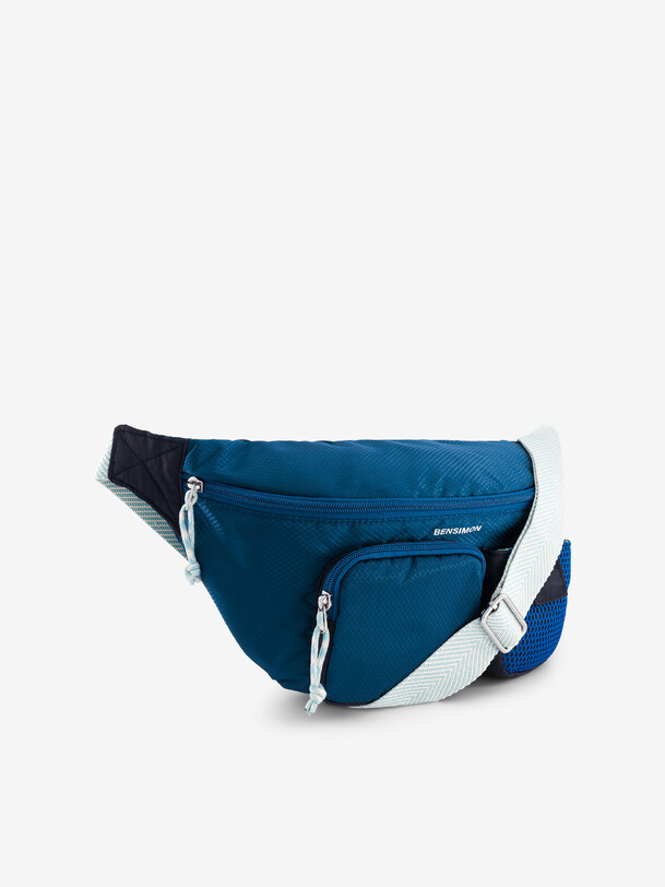 Mexico fanny pack with a large zippered pocket and an adjustable handle. It features an interior zippered pocket, a front zippered pocket, and another with a magnetic button. Dimensions: 33 cm long, 8.5 cm wide, and 18 cm high.