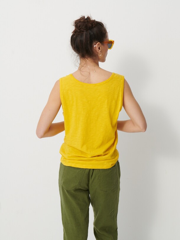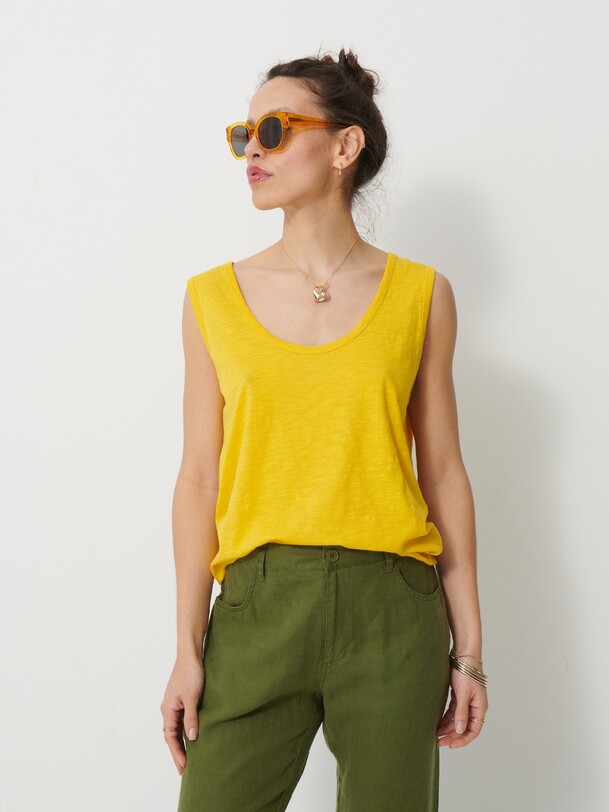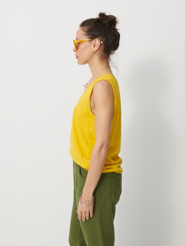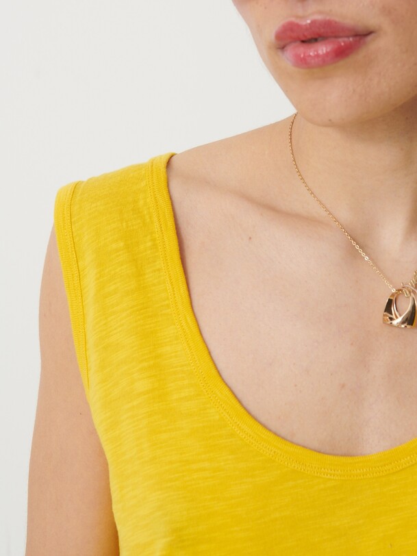 Noor Flamed Cotton T-Shirt. Tank top with a round neckline, finished with ribbed trim at the collar and straps.