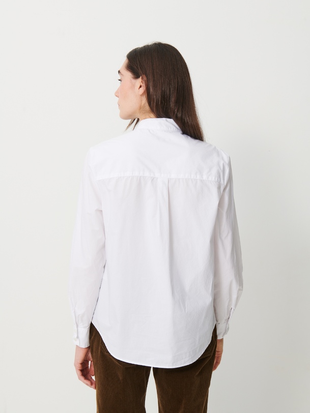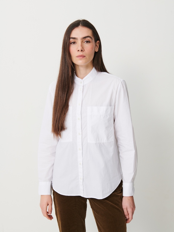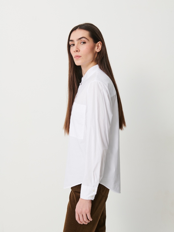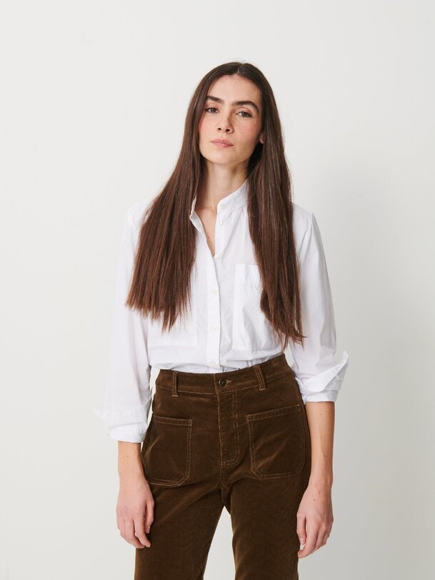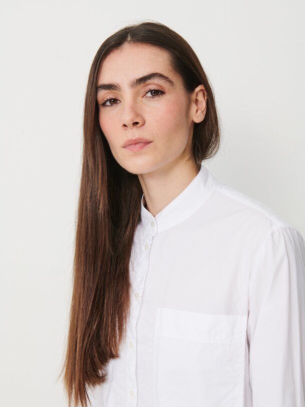 In bright white, the Oleya shirt embraces timelessness. A mandarin collar, straight cut, and a shirttail hem create a free and structured silhouette. The patch pockets reinforce its chic, utilitarian feel, perfectly in keeping with Bensimon’s DNA. A modern basic to wear throughout the seasons.