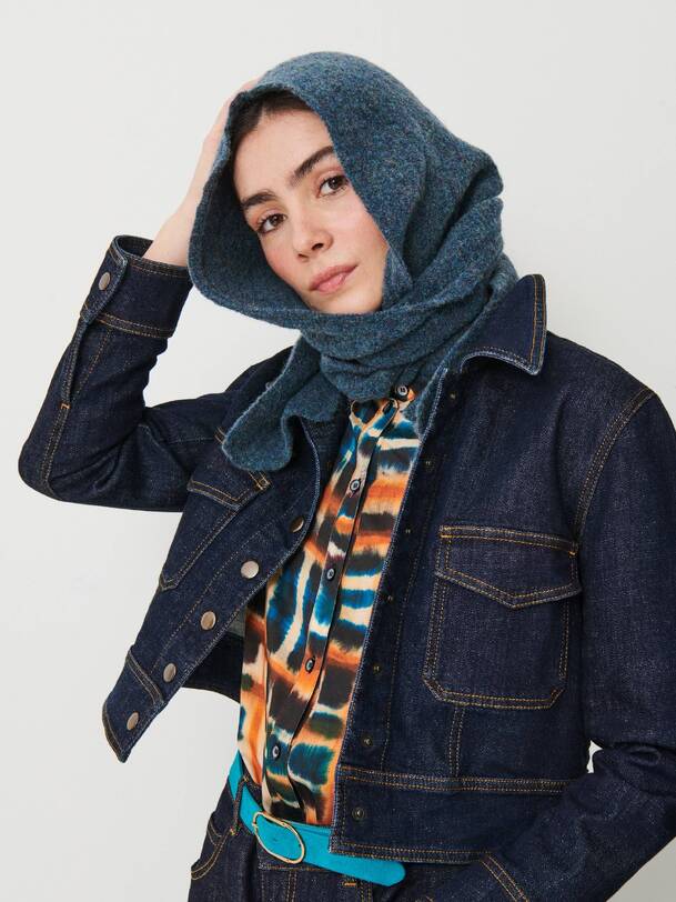 Conceived as a hood and designed to be worn under a sweater or a coat, the Ophelia scarf unfolds, wraps and ties around the neck in a single gesture. Made mostly from wool and alpaca, its soft, slightly downy knit provides warmth and comfort without excess bulk. A nomadic accessory—both protective and elegant—that finishes an outfit with a touch of character.