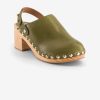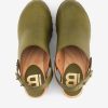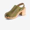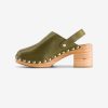 The Bensimon khaki leather clogs boast a bold, textured aesthetic. The contrast between the matte leather and the light wood base is enhanced by the metal rivets that emphasize the silhouette. The slingback strap provides good support, while the block heel adds just the right amount of height. Pair with white pants, a denim skirt, or a flowing jumpsuit. A pair with a strong character, somewhere between natural and modern, that stands out effortlessly.
