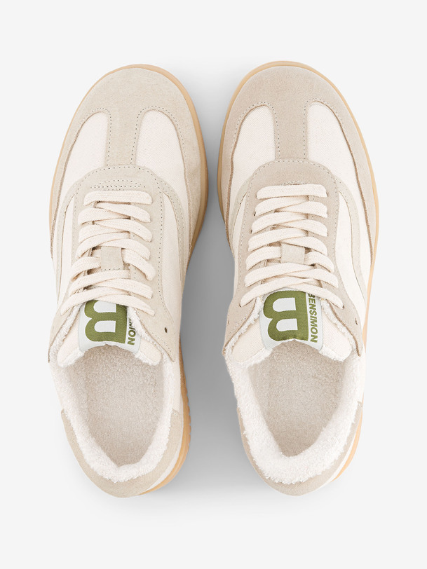 The Bensimon Vintage sneakers in ecru and beige play the neutrality card with style. The soft contrast between canvas and suede, combined with the rubber sole and khaki B logo, offers a subtly retro silhouette that’s perfectly anchored in the present. A natural palette that adapts to any outfit without ever fading. Slip it on with white pants, light denim, or a flowing dress to break the mold. A lightweight, precise sneaker that’s always in the right tone.